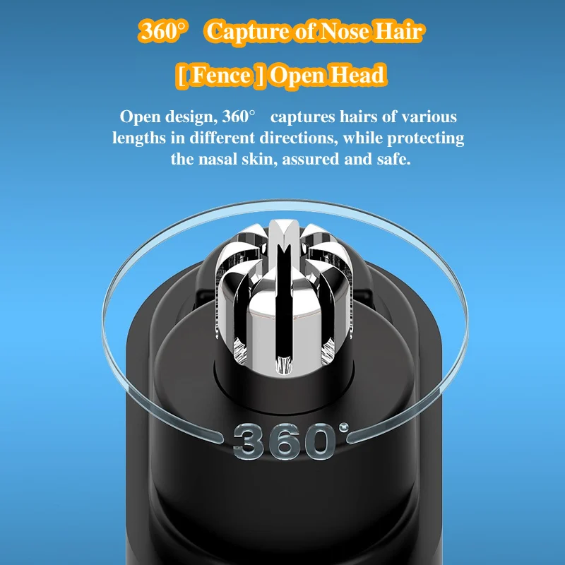 Snažan motor brzine 7.000 okr./min pokreće dvostruke oštrice koje osiguravaju čisto i precizno šišanje. Zaobljena, ravna glava za šišanje prilagođava se unutarnjoj stijenci nosne šupljine, omogućujući glatko i precizno uklanjanje dlačica bez bolnog ili neugodnog povlačenja. Trimer hvata dlačice u nosu pod kutom od 360° i skraćuje ih na odgovarajuću duljinu.
